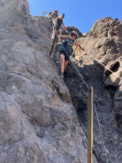 The remaining cable section was like a stair master with cables. We were all thinking I’m going to feel that in my glutes later. Once you complete that section it is basically just a moderate hike to the car park. The only concern was the amount of sun in this section. We all had plenty of water to get through to the end. Overall this hike took 2 hours 27 minutes with a 1,789 foot elevation gain. The time included the break at the top I forgot to stop my watch up there.